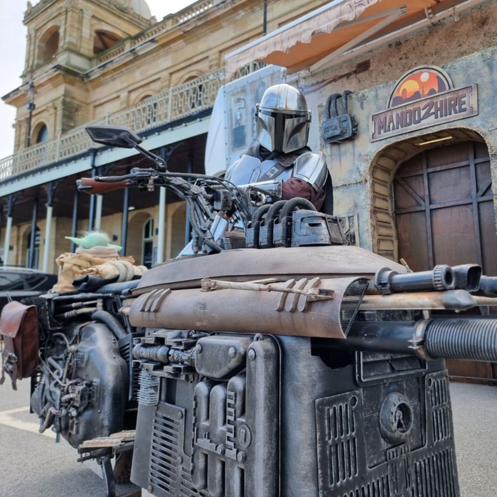 Mando2HireMeet the UK’s only Mando with operational speeder bike and official Din Djarin voice.