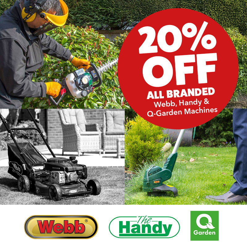 Get 20% OFF all branded Webb, Handy & Q-Garden Machines on the day!
