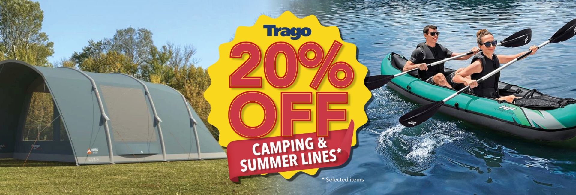 Just in time for summer we’ve got 20% off! On selected Camping Equipment & Summer Fun products we’ve dropped our bargain Trago Prices by an extra 20%!