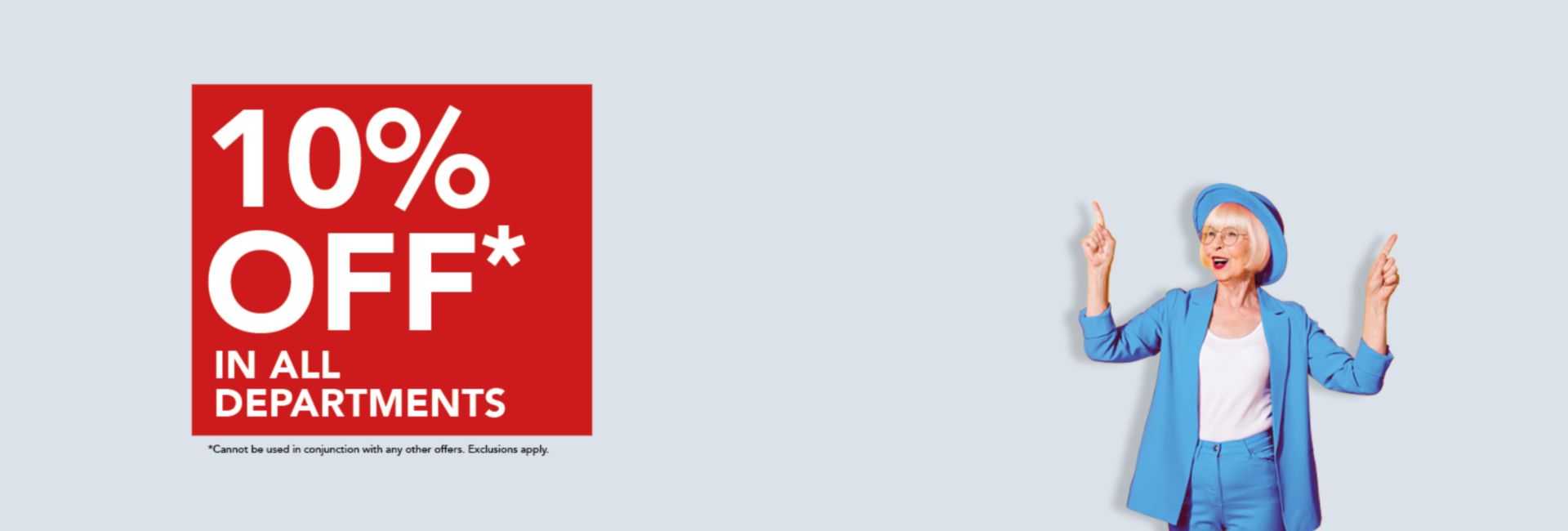 Just bring your bus pass or something similar with you and we’ll give you a big 10% OFF IN ALL DEPARTMENTS!*